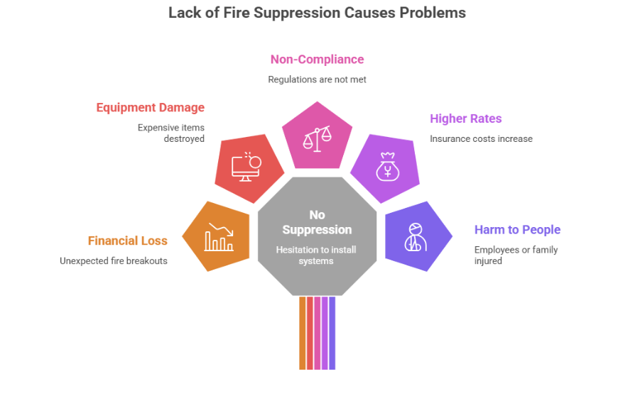 The customers may be hesitant to install fire suppression systems due to the cost or may be unaware of it. This may, however, lead to greater problems at a later point. These problems are as follows: