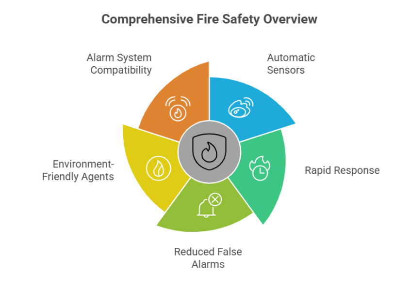 Fire safety systems are those fire systems which can detect fire and extinguish it without human intervention.