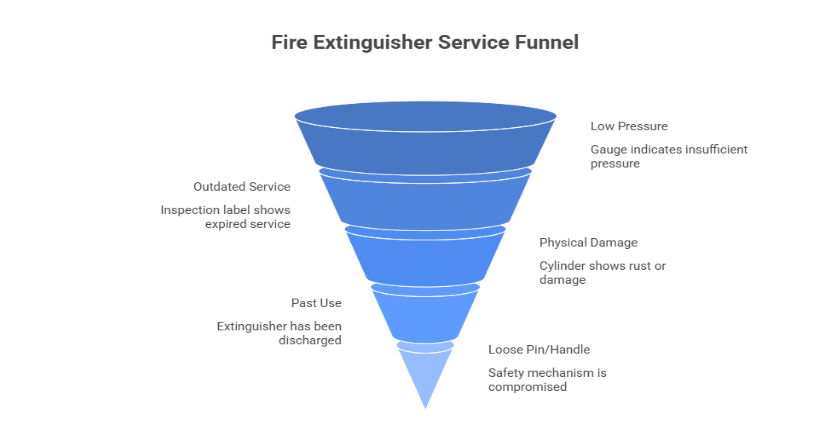 The most typical symptoms that show that your extinguisher must be serviced are: